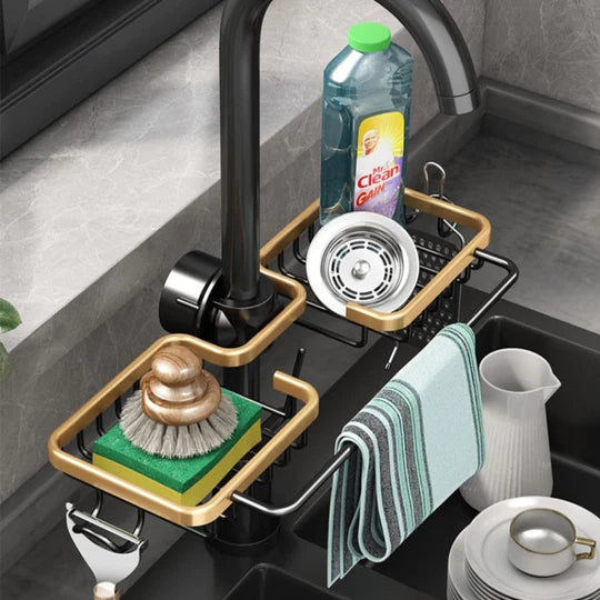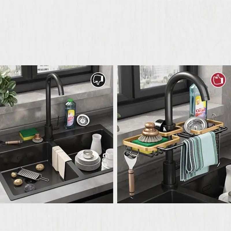 Durable Aluminum Construction: Made from premium aluminum, this sink organizer is built to withstand daily wear and tear. It's rust-resistant, ensuring longevity and a polished appearance even in a high-moisture environment.