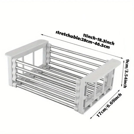 Whether you're a seasoned chef or a kitchen novice, our Retractable Sink Shelf is here to simplify your cooking experience. Engineered for versatility, this shelf adapts to your needs with ease, serving as an extra workspace for meal prep, a convenient storage solution for dish soap and sponges, or a handy drying rack for freshly washed produce.